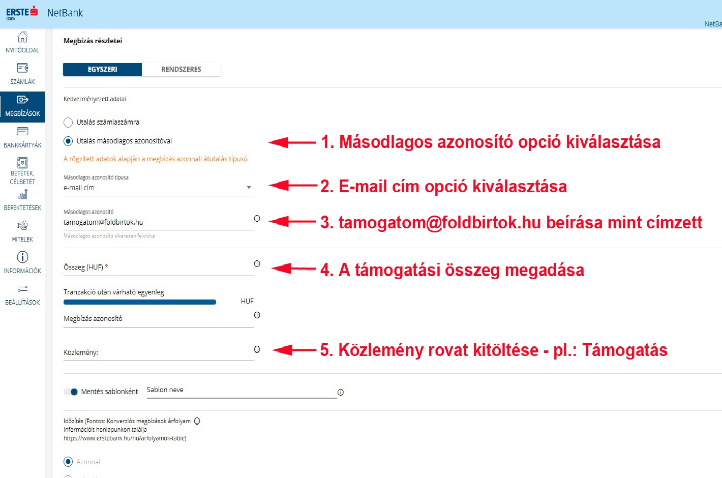 4. Az Erste Bank internet bankján (NetBank) keresztül a következőképpen: