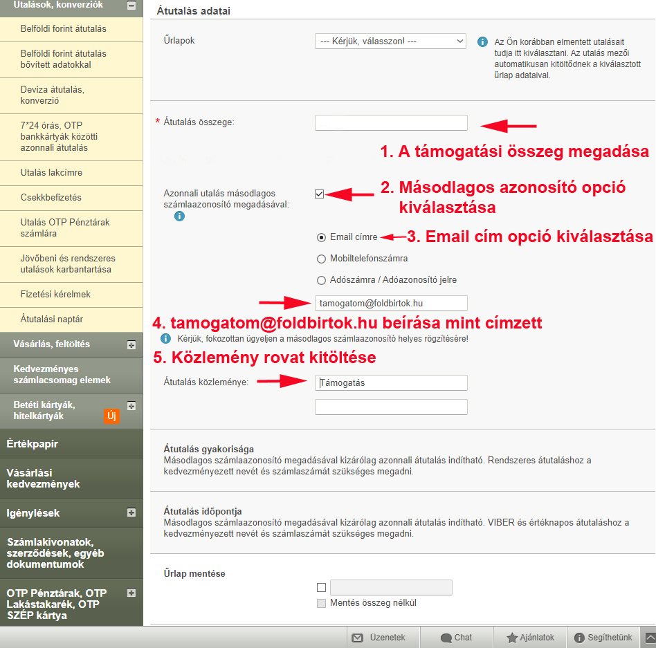 2. Az OTP Bank internet bankján (Internetbank) keresztül a következőképpen: